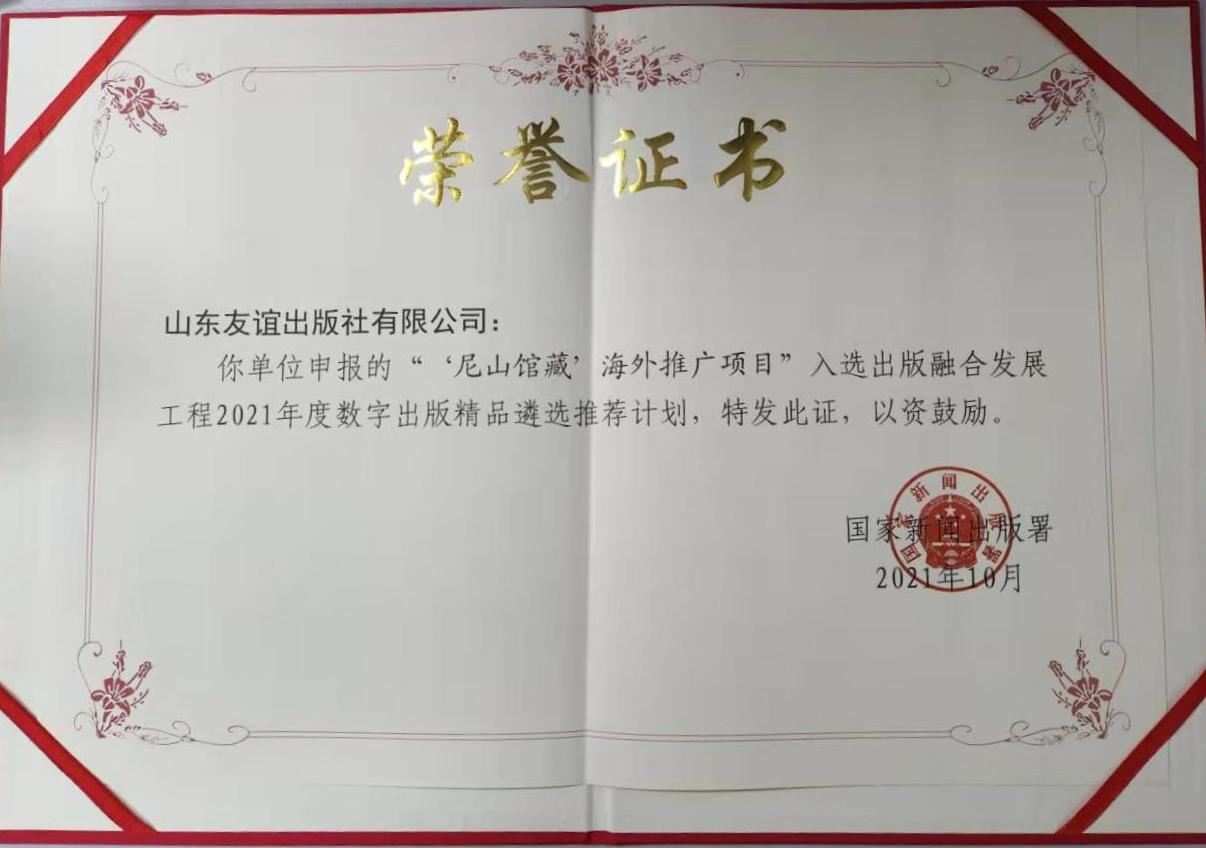 2021年10月,“尼山馆藏”海外推广项目入选国家新闻出版署2021年度数字出版精品遴选推荐计划